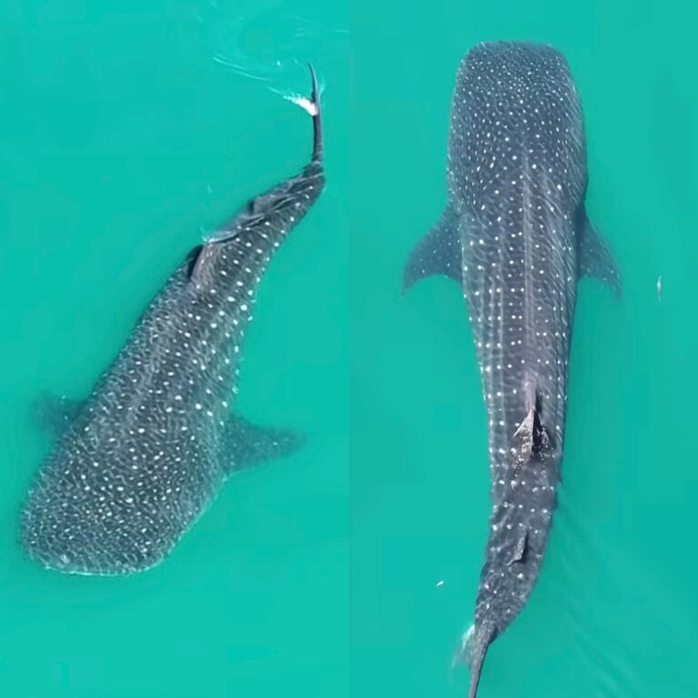 Registro feito por drone na Praia de Figueira, no domingo (22), evidencia a biodiversidade marinha da região.
