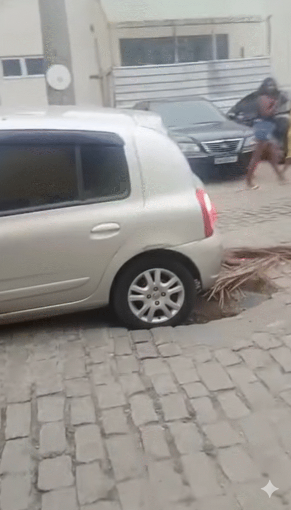 Pouco mais de 24 horas depois, o que era apenas um alerta acabou se tornando realidade. O veículo caiu na cratera, confirmando o risco que moradores e motoristas já vinham enfrentando ao passar pelo local.