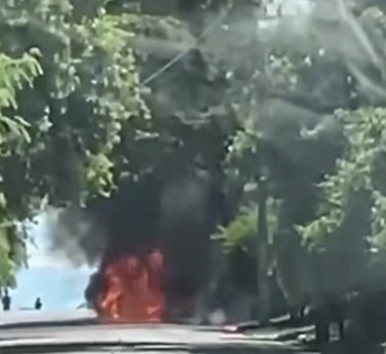 Veículo foi completamente destruído pelas chamas neste domingo (15); ninguém ficou ferido.