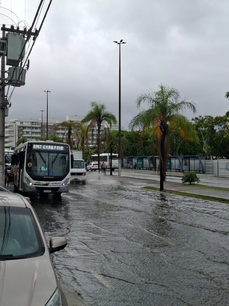 Avenida Júlia Kubitschek e bairros da cidade registraram ruas alagadas após avanço de frente fria no estado do Rio de Janeiro.