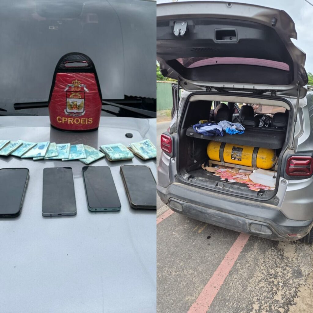 Durante a abordagem, os agentes apreenderam R$ 10.200 em espécie, oito aparelhos celulares e anotações contendo dados de diversos estabelecimentos comerciais, incluindo CNPJs e registros detalhados de cobranças realizadas e pendentes. O material, segundo a polícia, reforça os indícios de organização e sistematização da atividade criminosa.