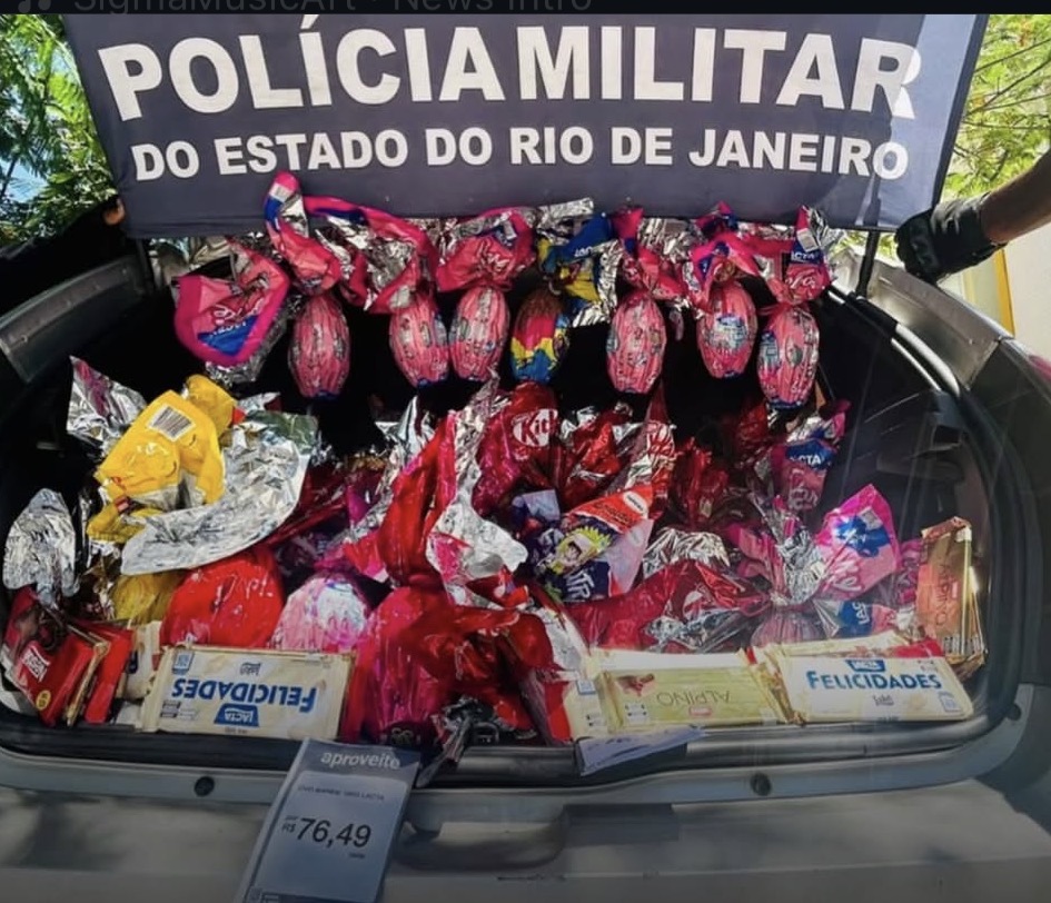 Com os suspeitos, foram apreendidos aproximadamente 60 ovos de Páscoa, 26 barras de chocolate e aparelhos celulares, além do veículo utilizado na ação. Segundo a Polícia Militar, todo o material foi recuperado.